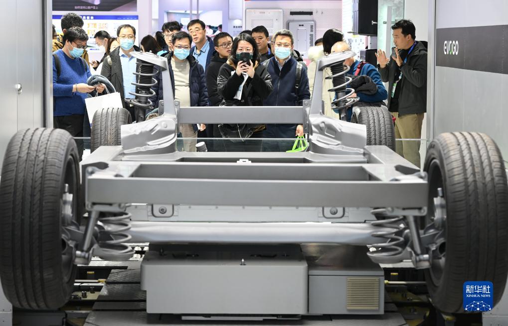 在北京举办的首届中国国际供应链促进博览会上,智能汽车链展区涵盖产业链上中下游及服务四个板块,对核心原材料、元器件、工艺流程及不同车型等进行展示,全链条、全过程展现新动能驱动下智能汽车发展新能源化、智能化、舒适化的前景。