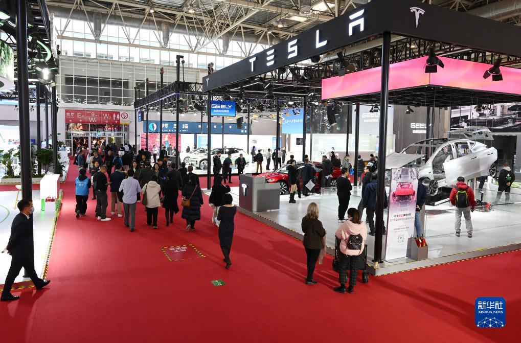 12月1日,链博会智能汽车链展区迎来众多参观者。
