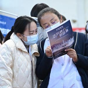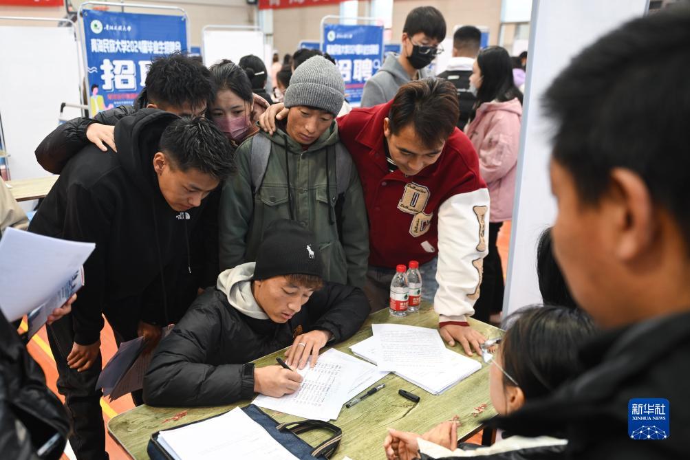 这是12月1日拍摄的青海民族大学校园招聘会现场。