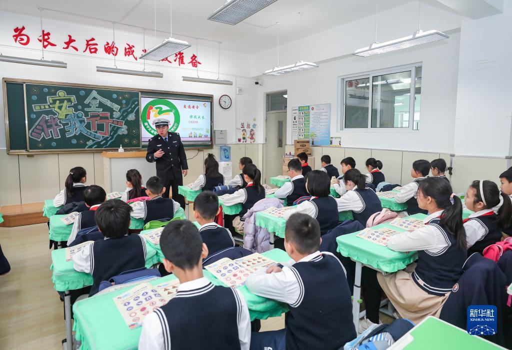 12月1日,沈阳市公安局交通警察局皇姑大队交警万林在沈阳市皇姑区童晖小学为同学们讲解交通安全相关知识。