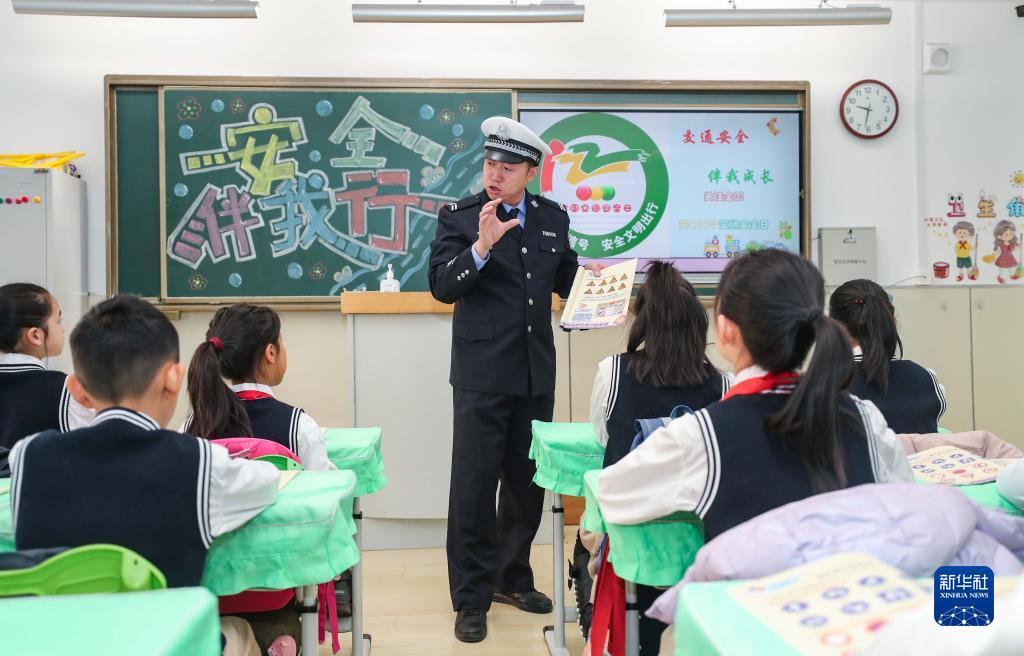 12月1日,沈阳市公安局交通警察局皇姑大队交警万林在沈阳市皇姑区童晖小学为同学们讲解交通安全相关知识。