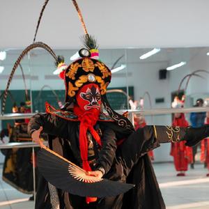 站点、踢腿,扇子一开一合间,红脸一下变成白脸,扭头间拂帽甩带,白脸又变成黑脸……短短几分钟时间里,重庆垫江县武安小学校川剧变脸社团的学生不露痕迹地变换了五张脸谱。