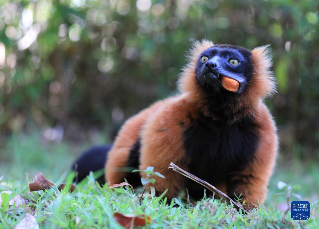 这是11月26日在马达加斯加安达西贝私人保护区拍摄的红领狐猴。
