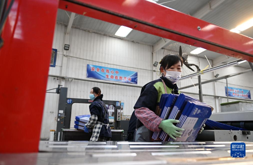 12月1日,位于望都县的河北和瑞包装有限公司工人在整理包装纸盒。