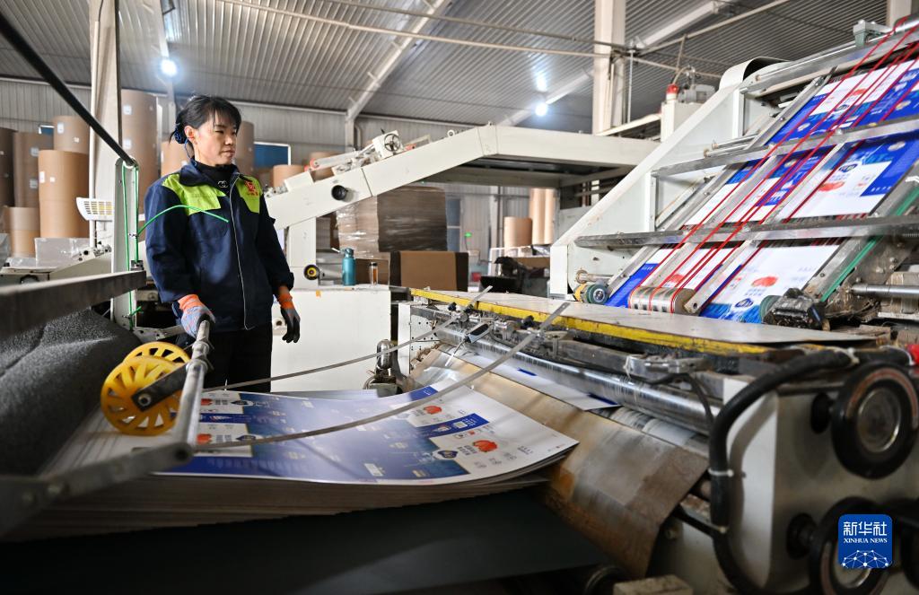 12月1日,位于望都县的河北和瑞包装有限公司工人在包装纸盒印刷线上工作。