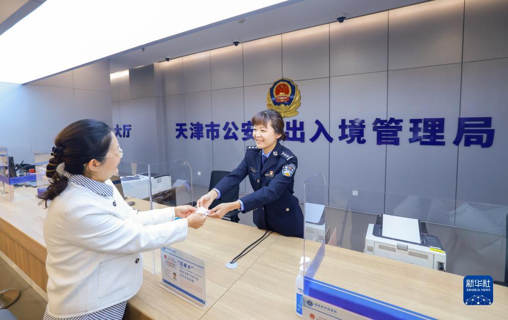 12月1日,天津市公安局出入境管理局的民警将办理完的“五星卡”交到办理人手中。