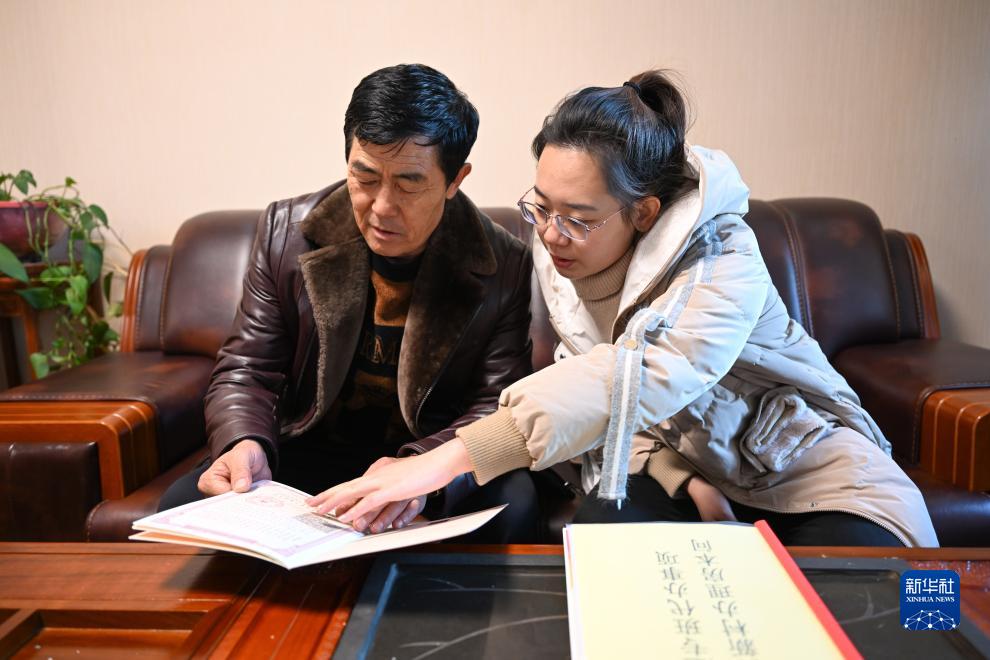 11月30日,在内蒙古呼和浩特市新城区华侨新村小区,信访代办员、社区党委书记范晨霞(右)与小区居民云明江交流。