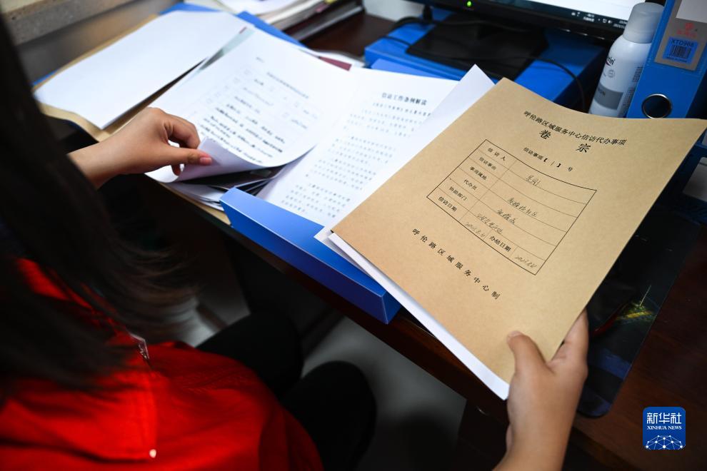 11月30日,在内蒙古呼和浩特市新城区苏雅拉社区,信访代办员、社区工作人员查阅信访代办事项档案。