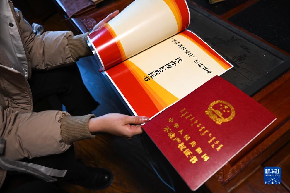 11月30日在内蒙古呼和浩特市新城区华侨新村小区拍摄的信访事项代办授权委托书和今年办下来的房本。据了解,该小区自2009年交房起一直未能办理房本,今年在信访代办工作的帮助下陆续解决。