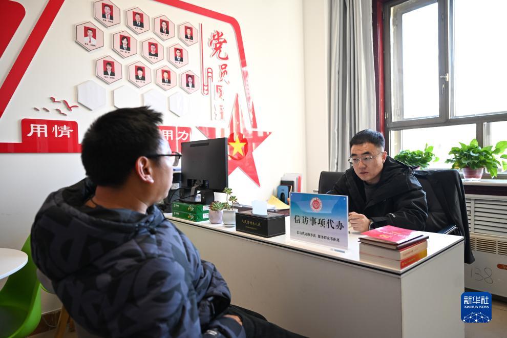 11月30日,工作人员(右)在内蒙古呼和浩特市新城区信访局接待信访群众。