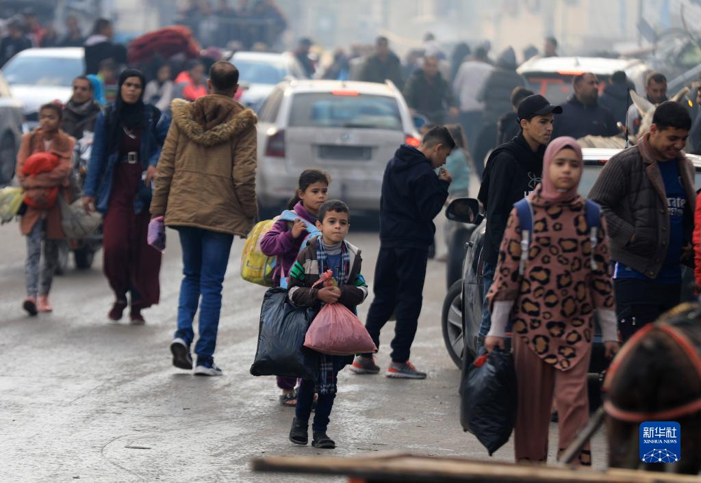 12月1日,在加沙地带南部城市汗尤尼斯,人们在以军恢复军事行动后逃离家园。