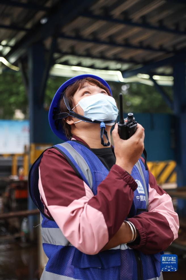 12月1日,工人在海口市海南中心项目指挥塔吊车。