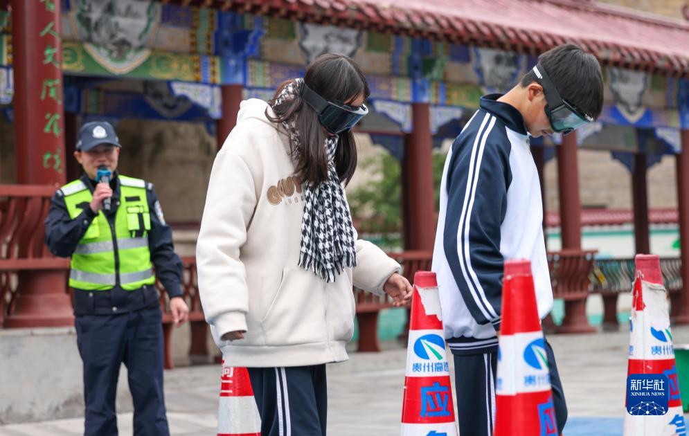 12月1日,在贵州省铜仁市玉屏侗族自治县黔东民族寄宿制中学,学生体验“酒醉驾驶”。