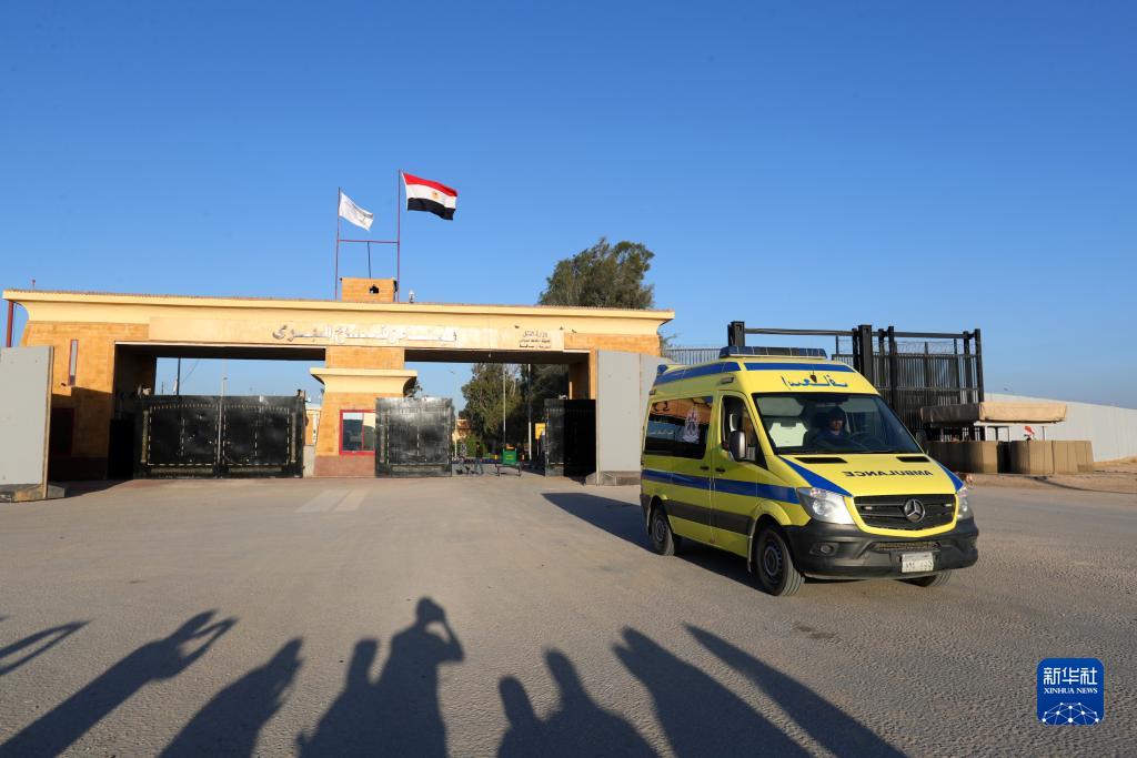 11月30日,一辆救护车从加沙地带返回拉法口岸埃及一侧。