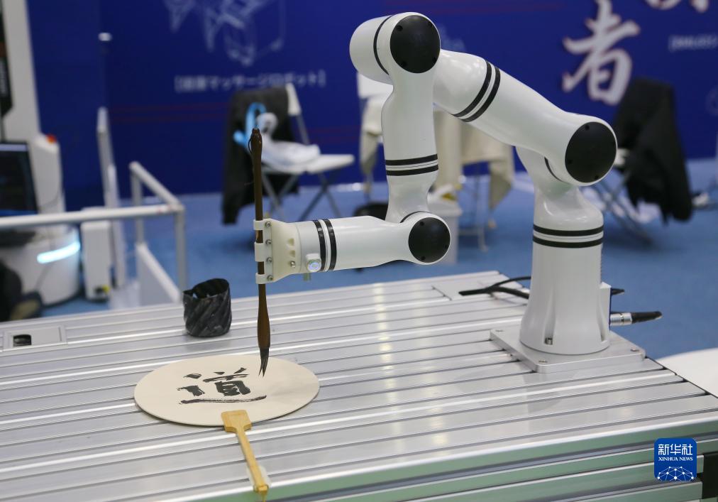 这是11月30日在日本东京举办的日本国际机器人展上拍摄的一款会写书法的智能机器人。