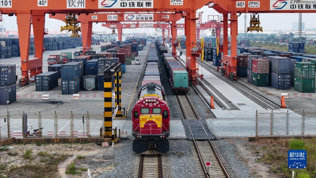 借助广西向海经济的发展推动,广西钦州港从地区性港口向国际化港口迈进,从港口枢纽向通道枢纽升级,其“海转铁”经西部陆海新通道联运班列运输货物的品类达980多种,运输范围辐射我国18个省区市的69个城市、138个铁路站点,通达全球120个国家和地区的473个港口。中国铁路南宁局集团有限公司的统计显示:截至11月26日,西部陆海新通道铁海班列运输新通道货物78万标箱,同比增幅14.7%。
