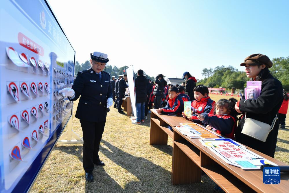 12月1日,在长沙市望城区新河学校,学生和家长参加交通标识竞答活动。