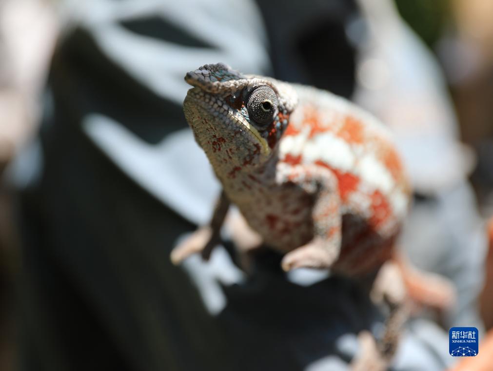 这是11月27日在马达加斯加马罗泽沃村蝴蝶谷拍摄的变色龙。