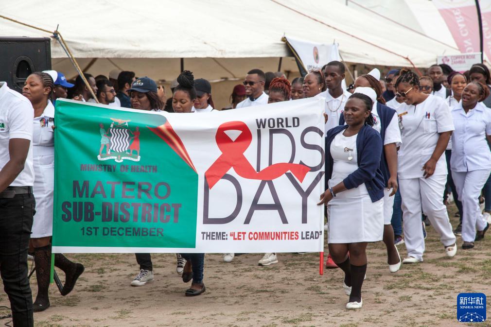 12月1日,医务工作者在赞比亚首都卢萨卡参加世界艾滋病日宣传活动。
