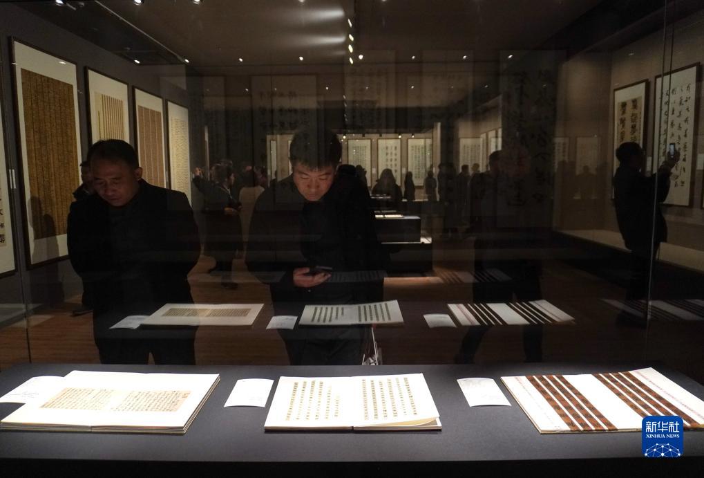 12月2日,观众观看“简述中国——2023全国简牍书法大展”上的简牍书法作品。