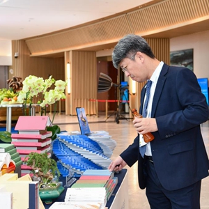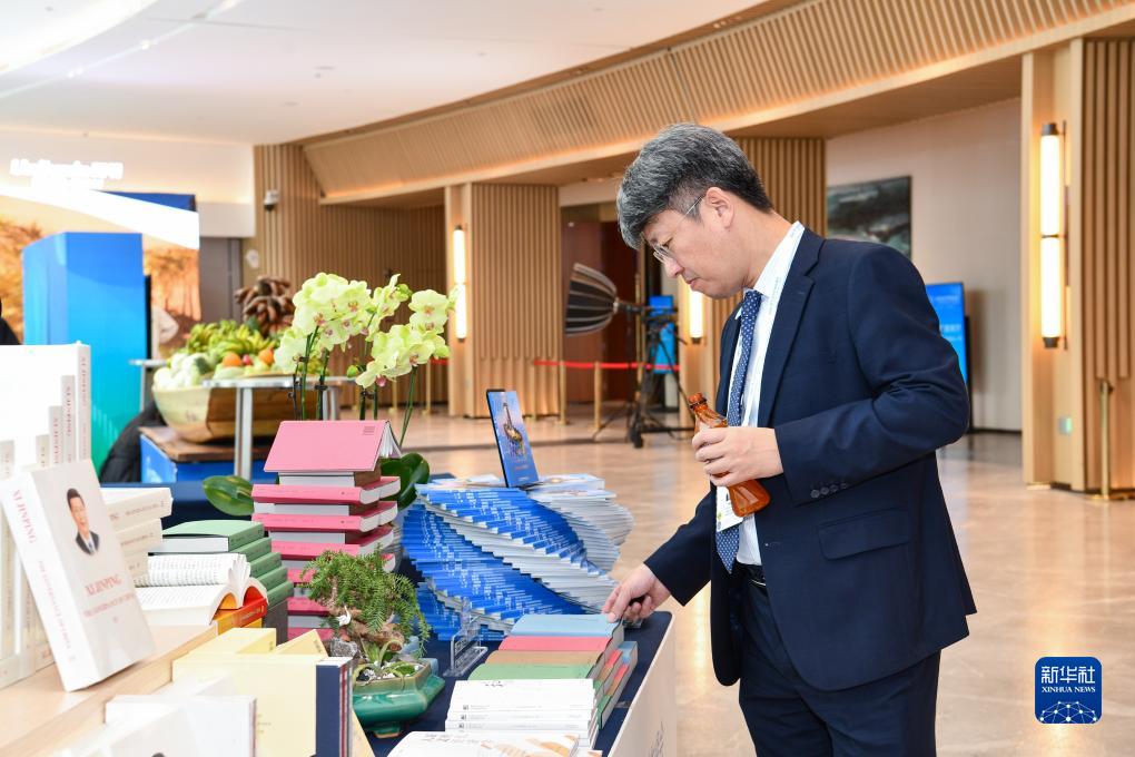 12月2日,一名参会代表在广州南沙湾滨海会议中心翻阅书籍。