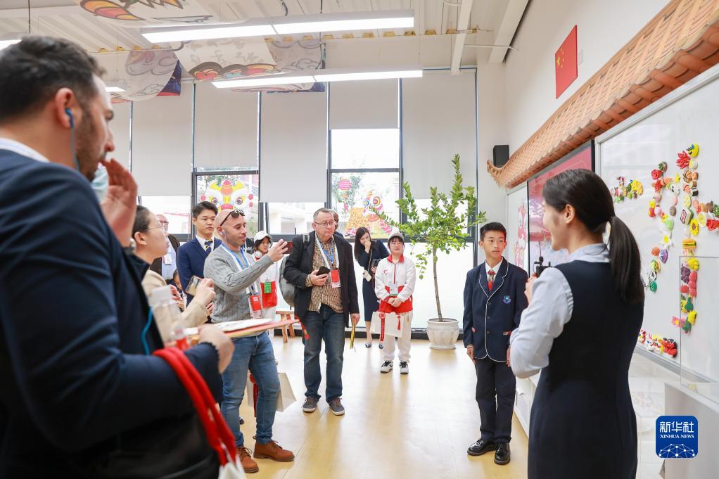 12月2日,世界媒体峰会参会代表在广州外国语学校参观。