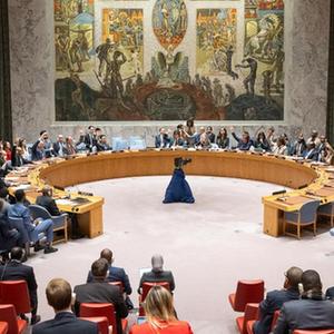 这是12月1日在位于纽约的联合国总部拍摄的联合国安理会会议现场。