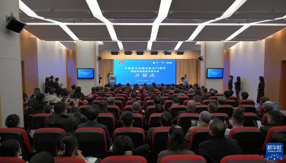 这是12月3日在北京拍摄的中国盲文出版社成立70周年暨国际视障教育研讨会开幕式现场。