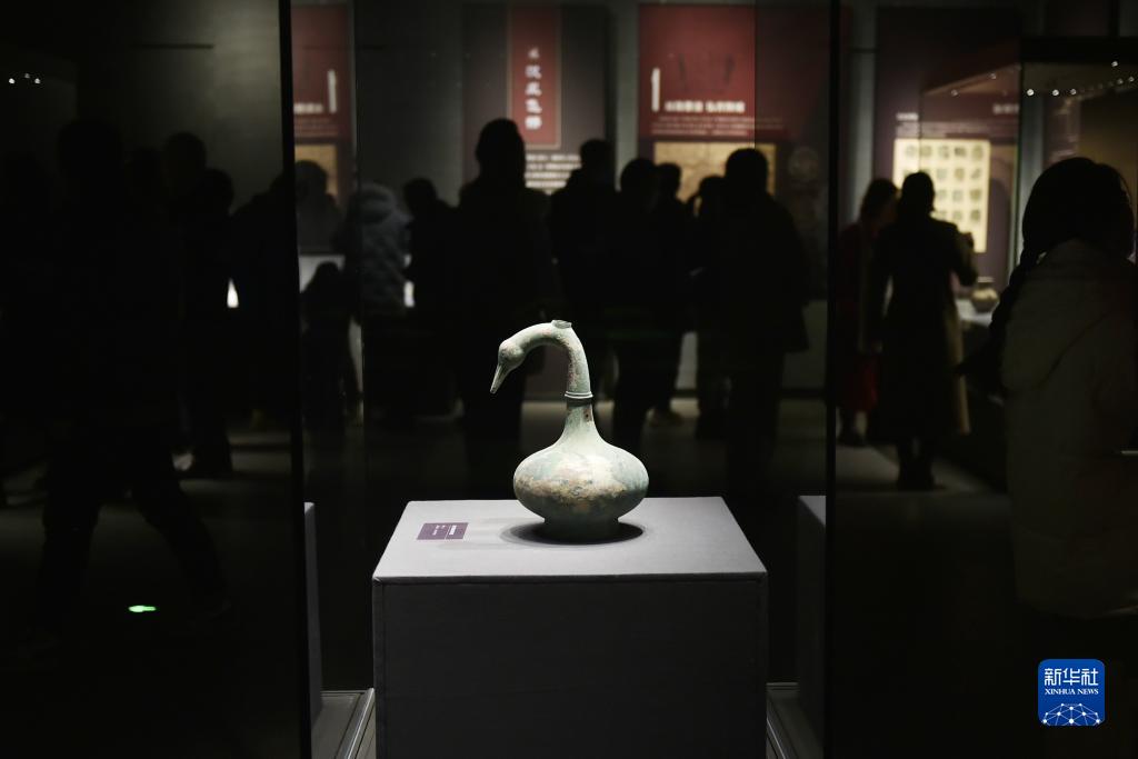 12月3日,观众在三门峡庙底沟博物馆参观“秦风汉韵靓崤函文物展”。