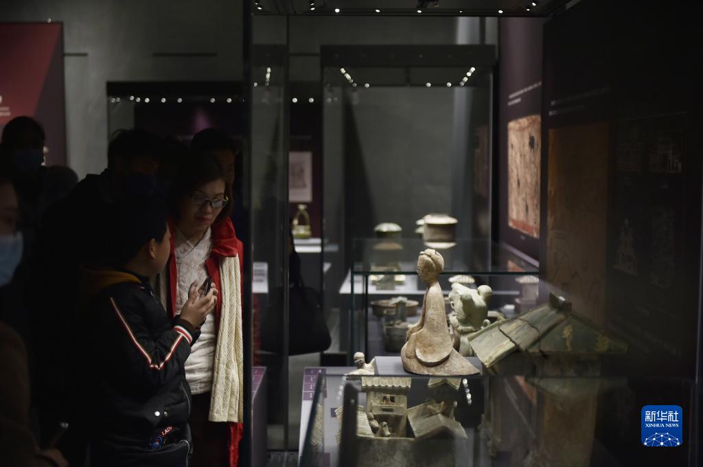 12月3日,观众在三门峡庙底沟博物馆参观“秦风汉韵靓崤函文物展”。