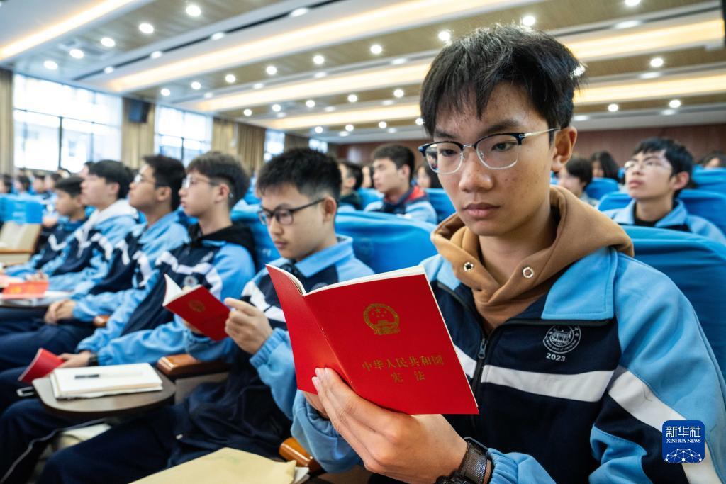 12月4日,在浏阳市第一中学,学生在阅读宪法读本。