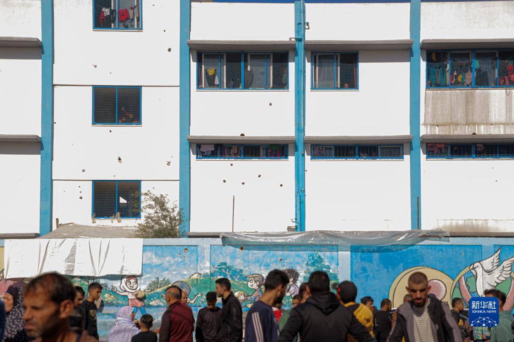 12月3日,加沙地带南部城市汗尤尼斯的一所学校遭以军袭击后墙壁受损。