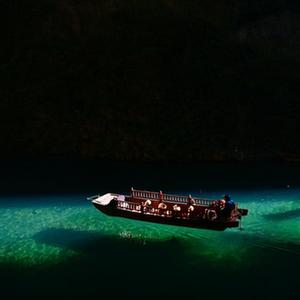 12月4日,游客在鹤峰县容美镇屏山峡谷乘船观光。
