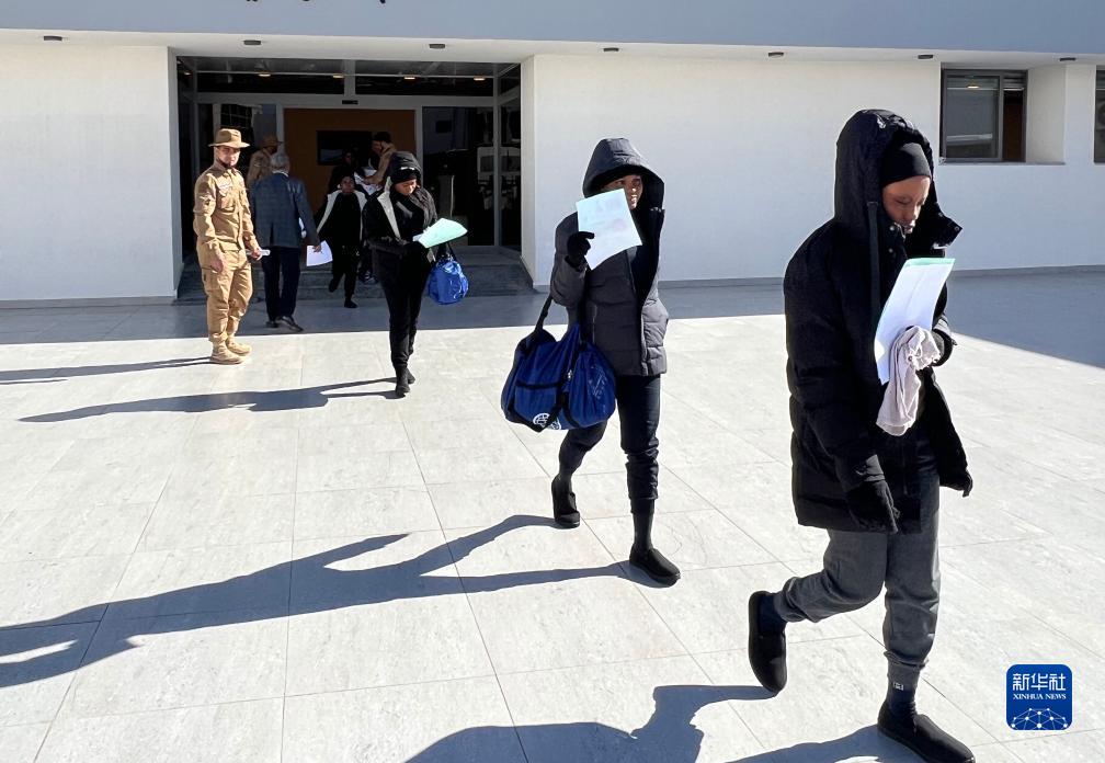 12月4日,在利比亚的黎波里,非法移民离开利比亚非法移民管控部门。