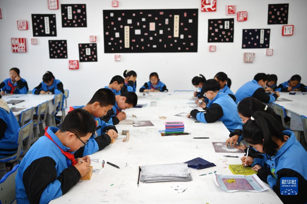 隆德县第二中学学生在学习篆刻(11月30日摄)。