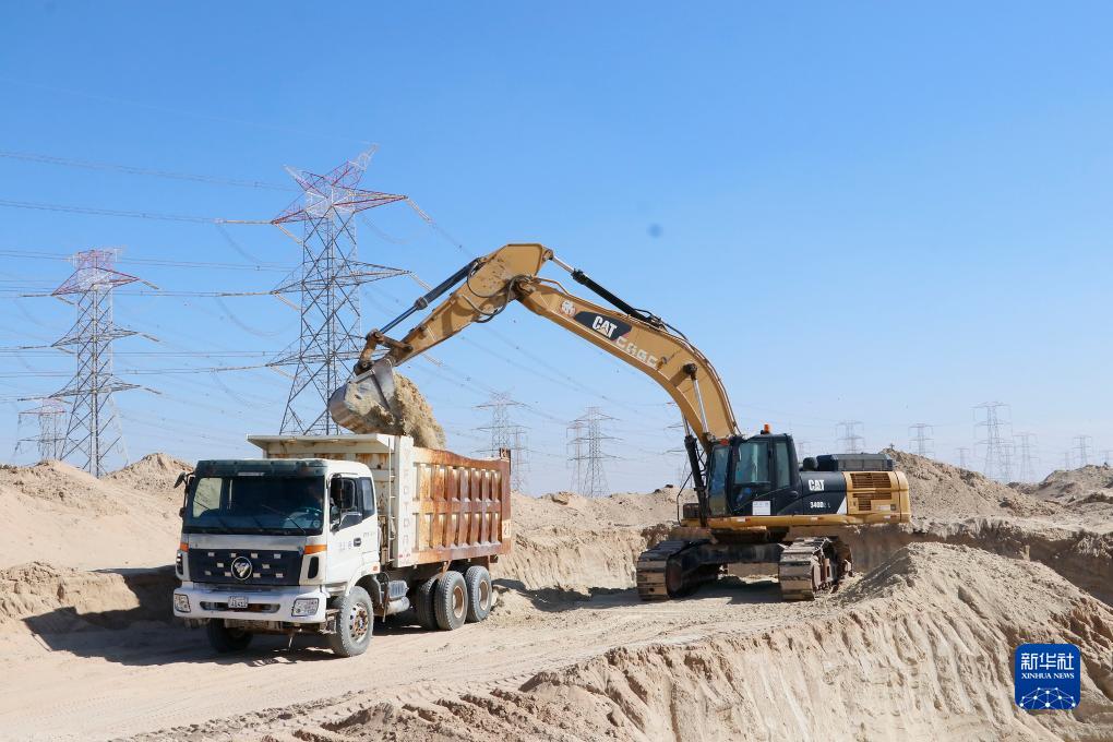 这是12月4日在科威特杰赫拉省拍摄的南萨阿德阿卜杜拉新城基础设施项目施工现场。