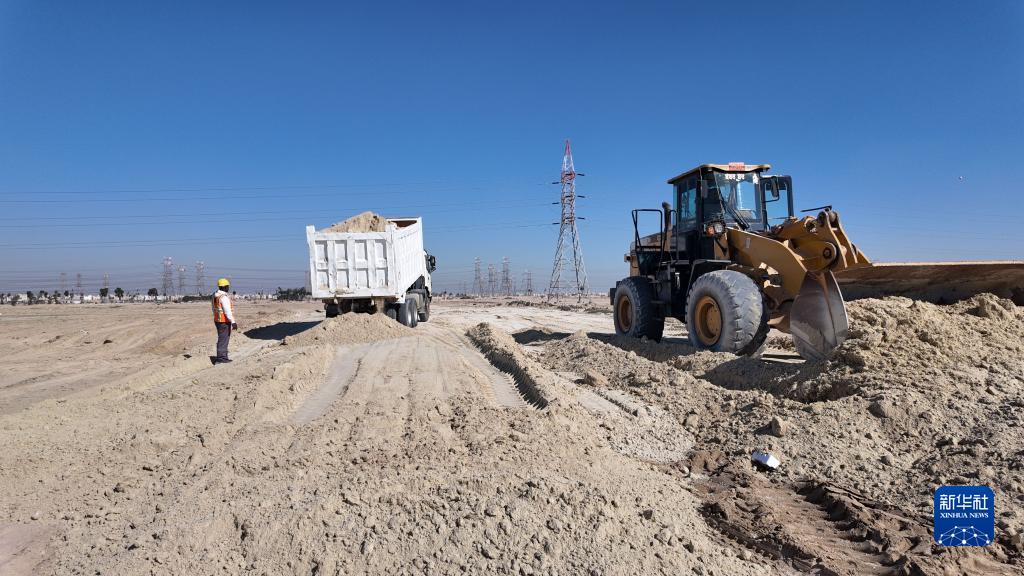 这是12月4日在科威特杰赫拉省拍摄的南萨阿德阿卜杜拉新城基础设施项目施工现场。