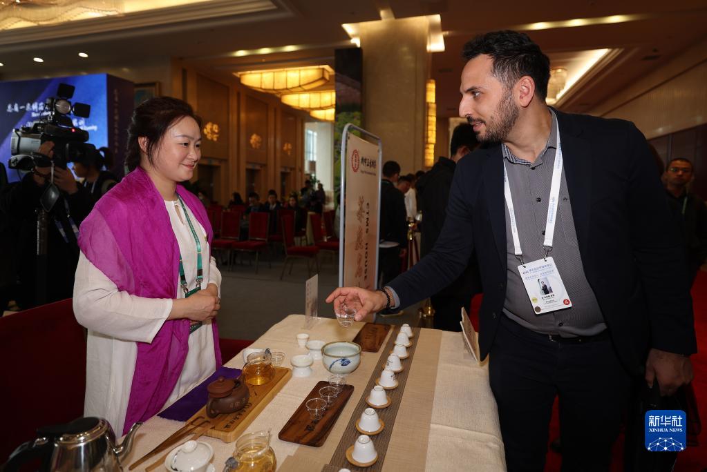 12月5日,在云南昆明参加第五届世界媒体峰会(云南分会场)暨第二届大象国际传播论坛的参会代表了解云南普洱茶。