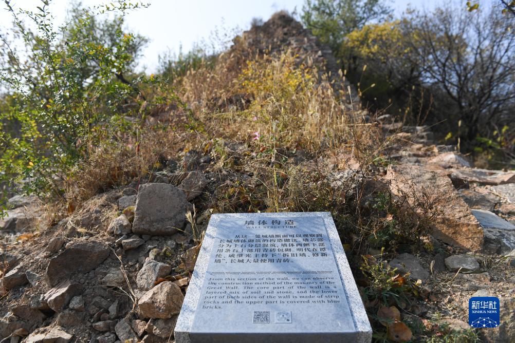 古北口长城蟠龙山段上的长城文化标识解说牌(10月23日摄)。