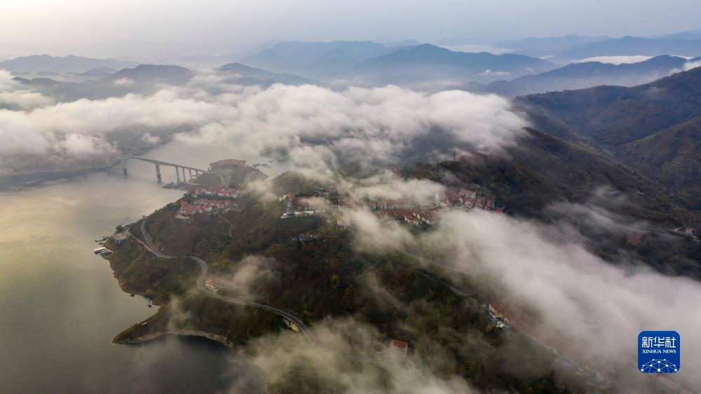 初冬时节,在贵州省黔南布依族苗族自治州罗甸县的红水河畔,山间云雾缭绕,层林尽染,风景如画。