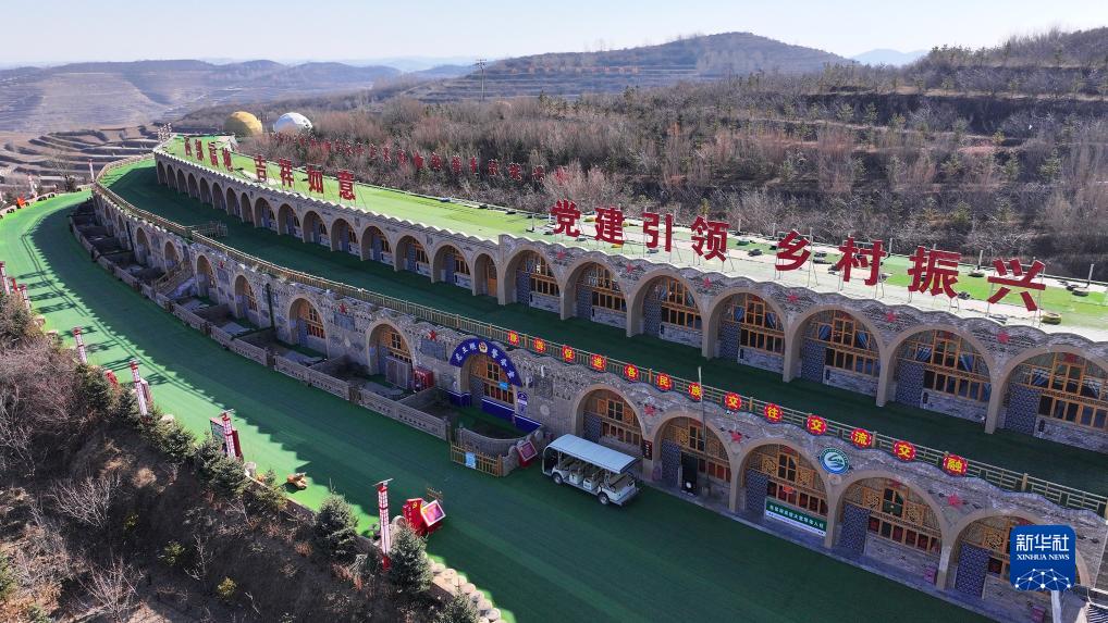 西吉县吉强镇龙王坝村窑洞宾馆(12月1日摄,无人机照片)。