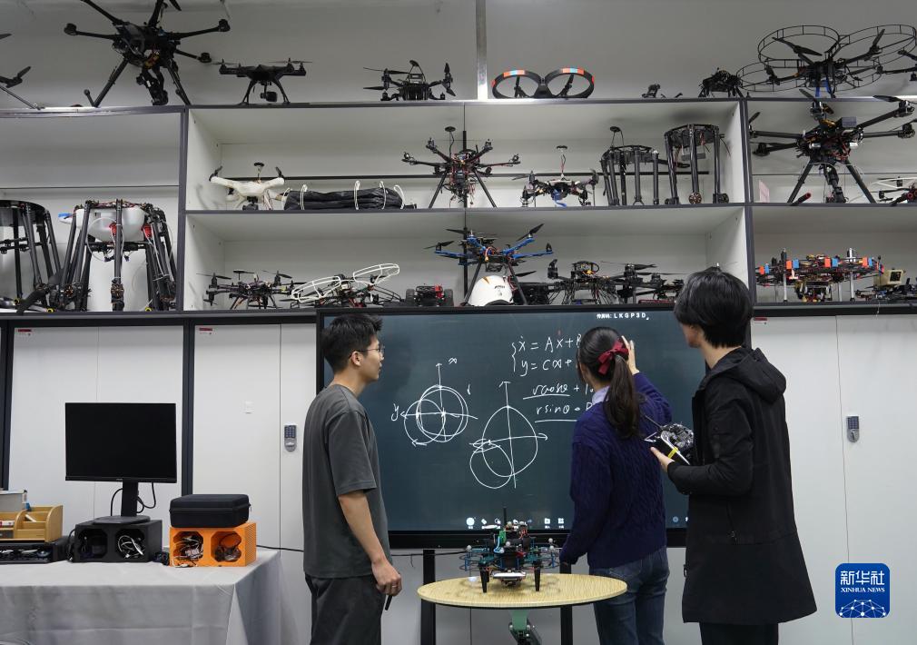 在上海交大机器人研究所的无人系统实验室,学生在进行讨论(11月24日摄)。