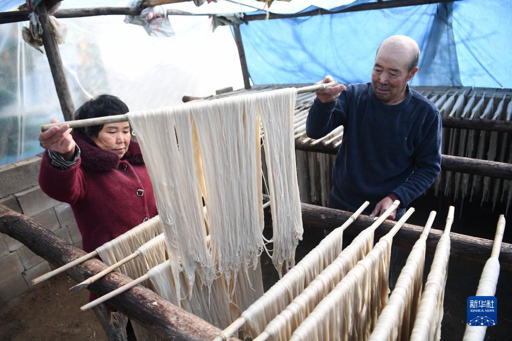 初冬时节,气温骤降,正是传统手工粉条加工的好时节。在河北省迁安市,农民们忙着加工晾晒粉条供应市场。近年来,迁安市着力构建“一村一品”产业发展格局,鼓励有条件的村庄和农户利用冬闲时节从事粉条加工产业,不断开拓省内外市场,有效拓宽群众增收途径。