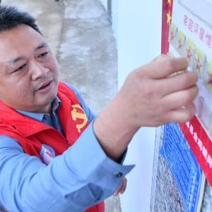 12月6日,在广西梧州市藤县金鸡镇同荣村,村干部为明星农户挂“星”。