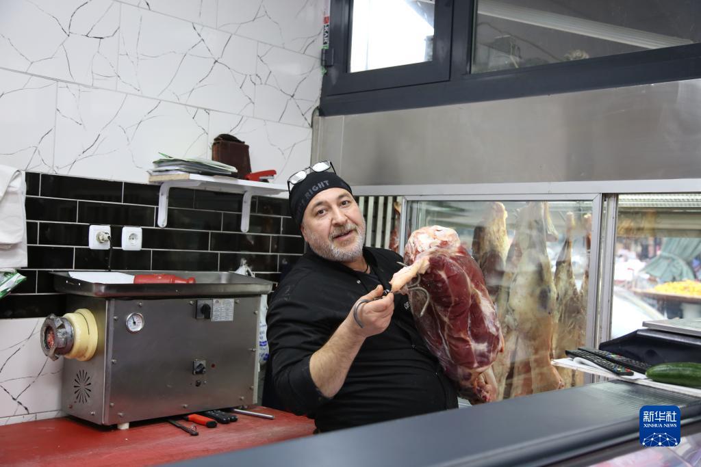 12月6日,一名男子在土耳其卡赫拉曼马拉什的肉铺工作。