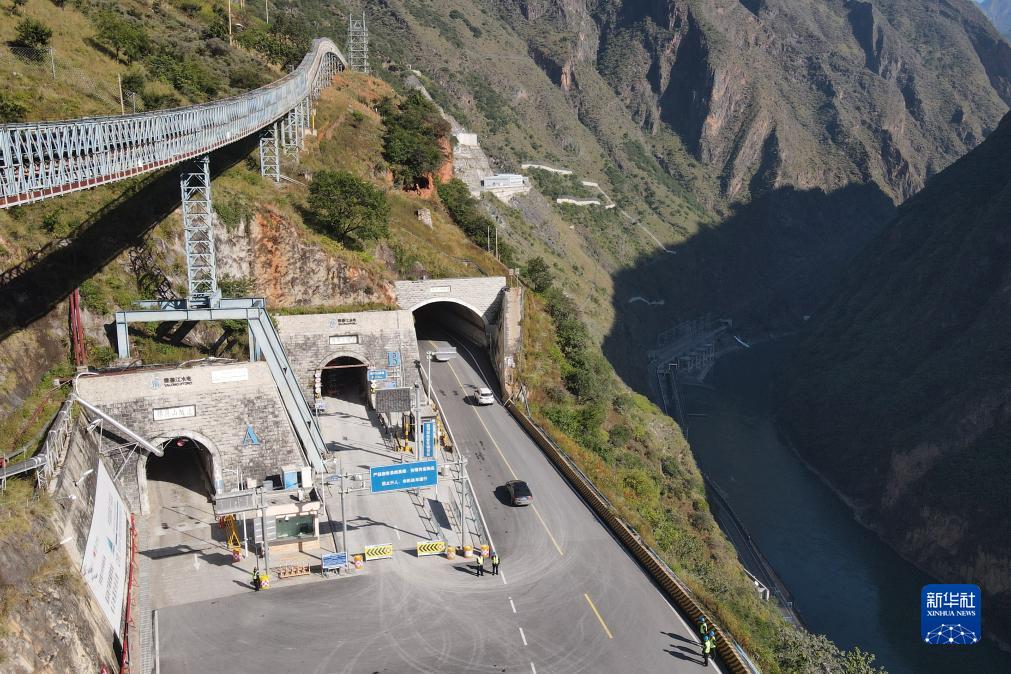 这是雅砻江畔,中国锦屏地下实验室所在的锦屏山隧道口(11月8日摄,无人机照片)。