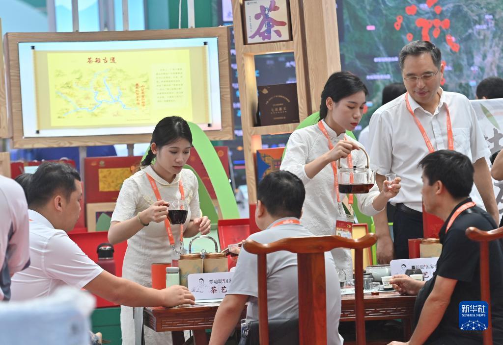 在南宁国际会展中心,观众在中国—东盟博览会上品饮六堡茶(9月18日摄)。