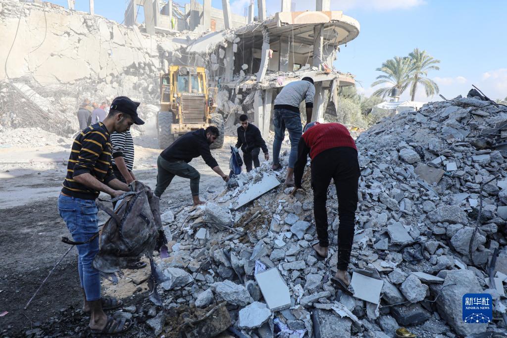 12月6日,在加沙地带代尔拜拉赫,人们查看以军空袭后的废墟。