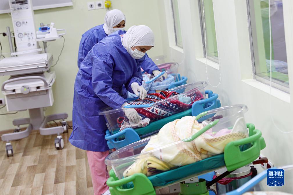12月3日,在埃及开罗以东的新行政首都医院,医护人员看护来自加沙的早产儿。