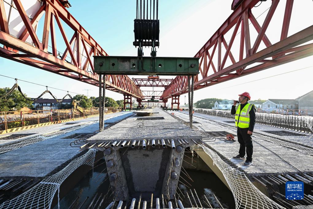 12月7日,中铁二十局工作人员在苏台高速公路七都至桃源段ST-QL5标主线桥梁架设现场指挥。